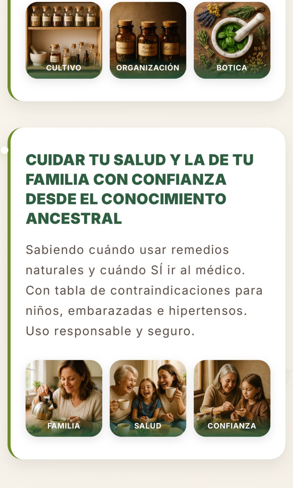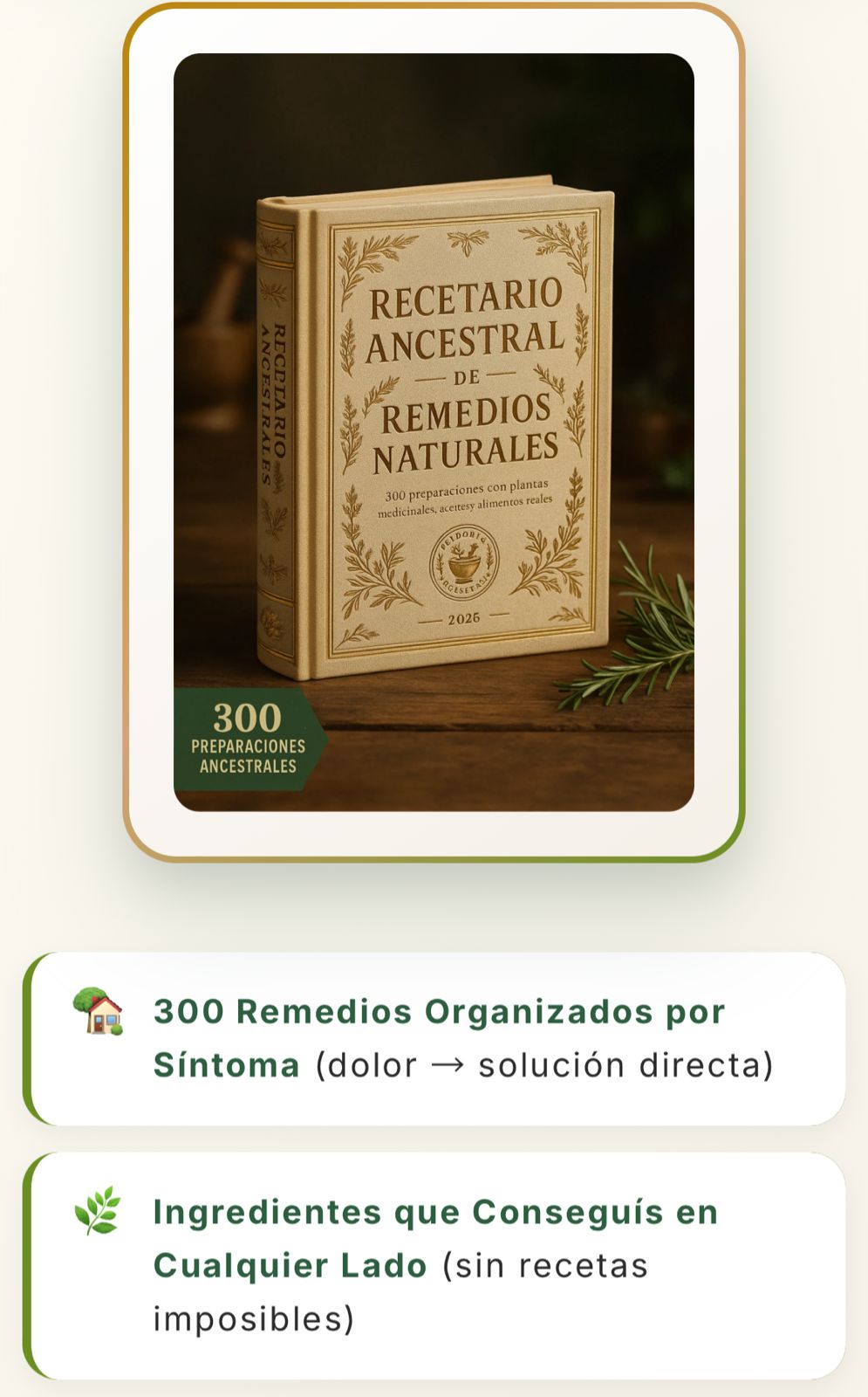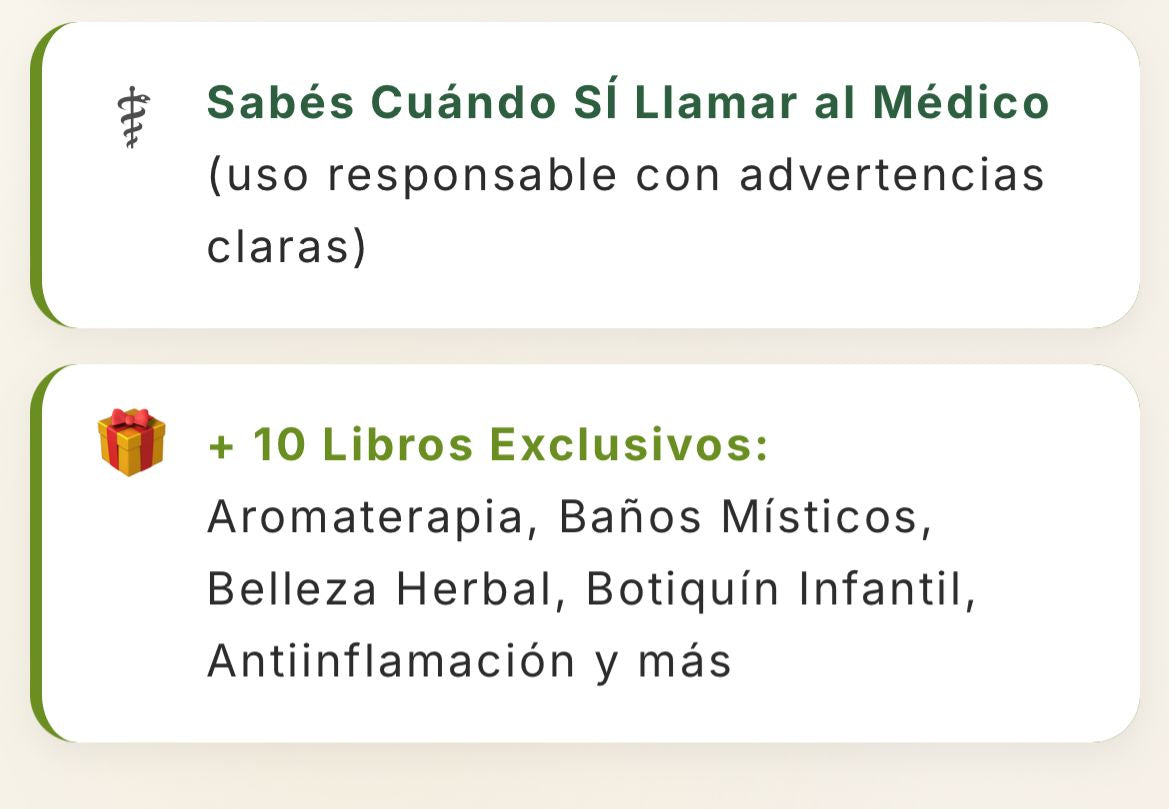 No. Es una guía práctica de remedios naturales y saber ancestral. No reemplaza controles, diagnósticos ni emergencias.